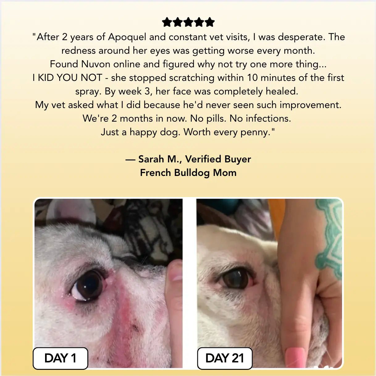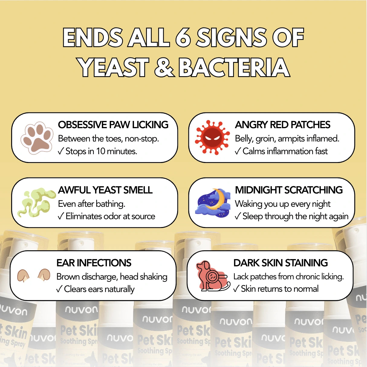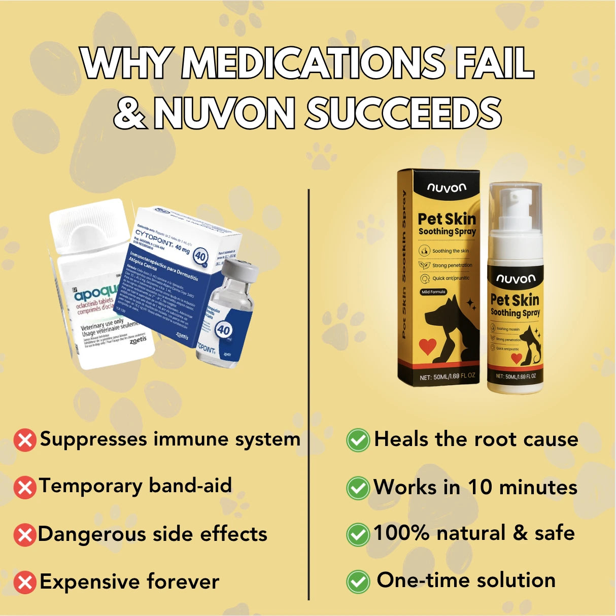 The real problem? Your dog's skin microbiome is destroyed. And until you fix that, nothing else works. The scratching continues. The smell returns. The bills pile up. Pills treat symptoms. Nuvon treats the cause.